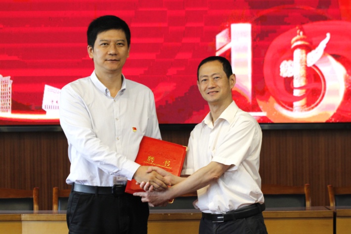 学院校党委书记王振钧为中共四大纪念馆馆长童科颁发党建领航导师聘书。