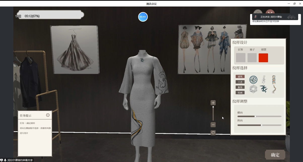 会上,邓凡老师对纺织服装类虚拟仿真实验建设进行了分享,纺织服装类虚拟仿真实验可以涵盖多个方面,包括纺织工程,服装工程等。学生可以通过虚拟仿真实验,学习和掌握不同材料的物理特性、纺织工艺流程以及服装生产的各个环节,邓凡老师对此进行了详细陈述。针对服装艺术设计方向,润尼尔谭峰老师以其他院校的案例演示讲解了服装与服饰设计过程中的各项功能及操作,包括头脑风暴、色彩设计、面料设计、造型设计等环节。谭老师提出纺织服装类虚拟仿真实验的目标是提供一个安全、高效的学习环境,帮助学生理解和掌握纺织服装领域的相关知识和技能。通过实践操作和模拟实践,学生可以增强对纺织服装工艺的理解,培养创造新思维和解决问题的能力。