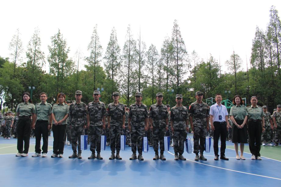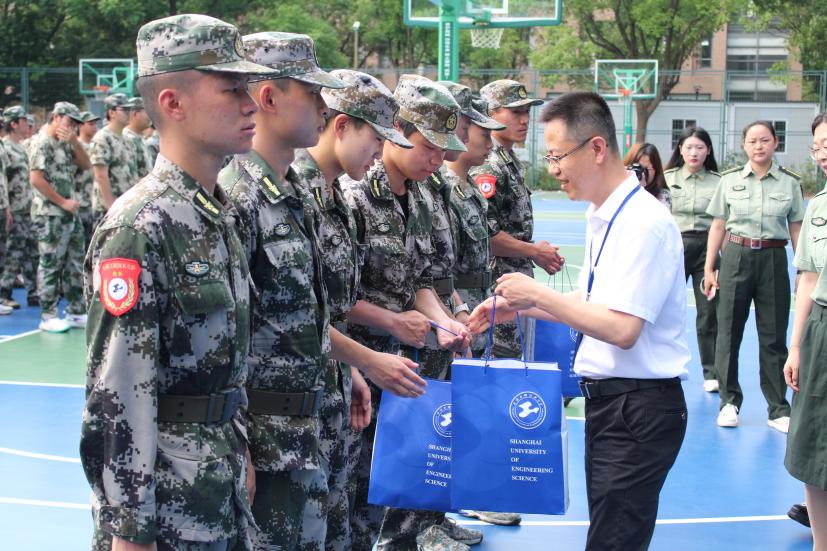 辛斌杰老师向全体带训教官和参训学生致以诚挚的慰问,充分肯定了军训成果,对教官们的辛勤付出表示由衷感谢。他以西周时期的“礼、乐、射、御、书、数”为例,向同学们讲述了军训的起源及重要性,希望同学们在军训中,厚植爱国情怀,培养克服困难的能力,锤炼品格,处理好师生关系、同学关系、上下级关系,战友关系,通过军训收获友谊。最后,辛老师向七位带训教官发放慰问品,并同副书记谢志霞、带训辅导员一起,向全体参训学生发放矿泉水等物资。