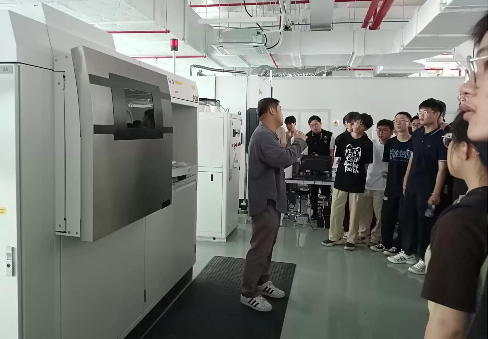 上海交通大学材料科学与工程学院的孔源老师带领同学们参观了增材制造联合研究中心,向同学们介绍了中心所承担的重大科研项目以及各种增材制造设备。