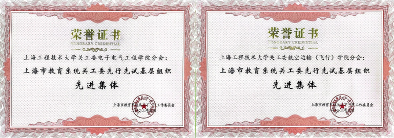 机械与汽车工程学院分会荣获“上海市教育系统五好关工委组织”;电子电气工程学院分会、航空运输(飞行)学院分会分别荣获“上海市教育系统关工委先行先试基层组织先进集体”。