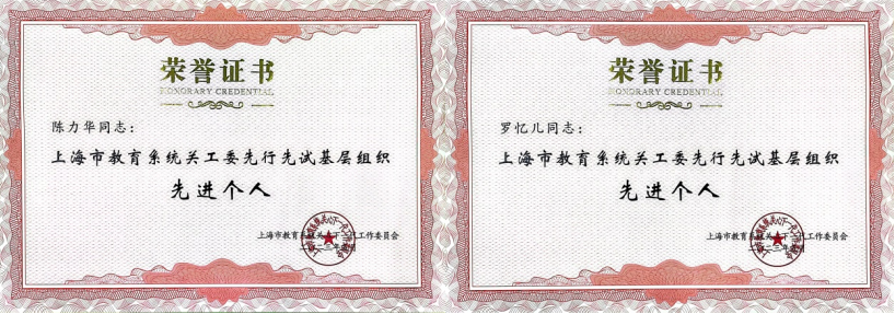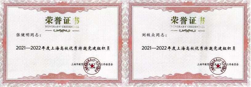 机械与汽车工程学院分会陈力华和航空运输(飞行)学院分会罗忆儿2位同志分获“上海市教育系统关工委先行先试基层组织先进个人”,相应的个人视频分获先进个人微视频特色奖;张健明和刘牧众2位同志荣获“2021-2022年度上海高校优秀特邀党建组织员”称号。