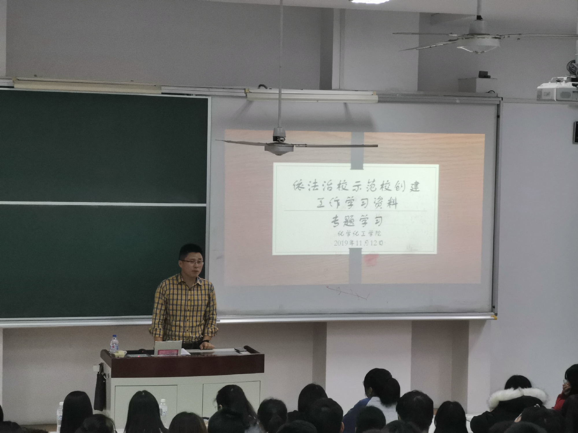 为深入贯彻教育部《全面推进依法治校实施纲要》,落实上海市教育法治建设“十三五”规划总体要求和学校依法治校示范校创建工作的总体部署,11月12日下午,化学化工学院开展了依法治校创建工作学习材料专题学习,专题学习由学生工作办公室辅导员张晓普主持,137名学生参加了学习会。