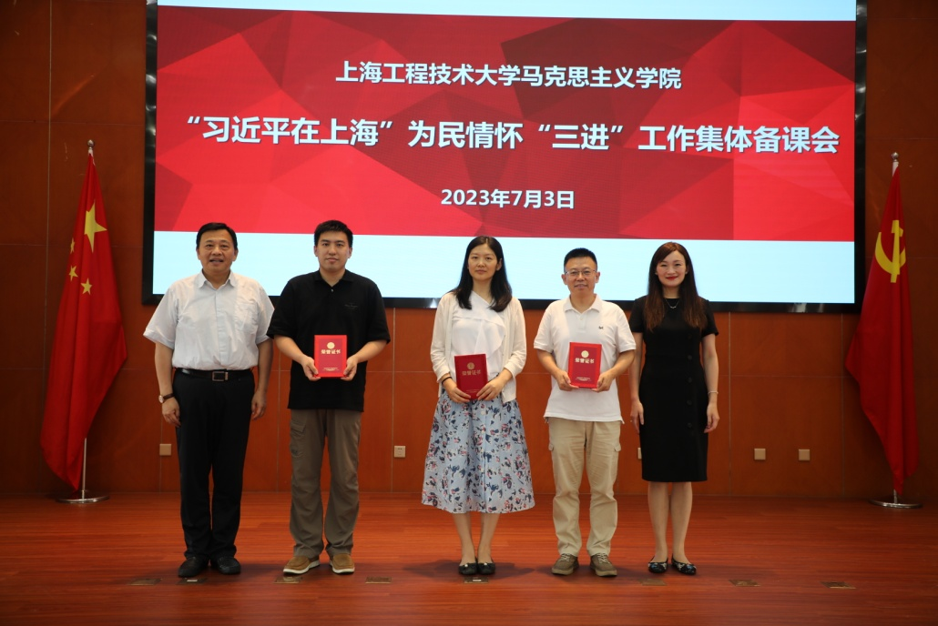 会上,史健勇副书记回顾了大学期间学习思政课的经历,深入浅出地剖析了讲好思政课的重要性,对参加教学展示的青年教师和点评专家表示感谢,对作为互学互鉴平台的集体备课会的形式表示肯定,鼓励青年教师通过集体备课、教学比拼等方式,不断提升教学能力和教学水平。史健勇、董旖旎为新成立的三个教学名师工作室:“教学研究名师工作室”(吴超)、“数字思政名师工作室”(徐静)、“教学方法名师工作室”(彭兴伟)颁发了证书,教学名师工作室是马院提升教学质量的一项新的改革举措。