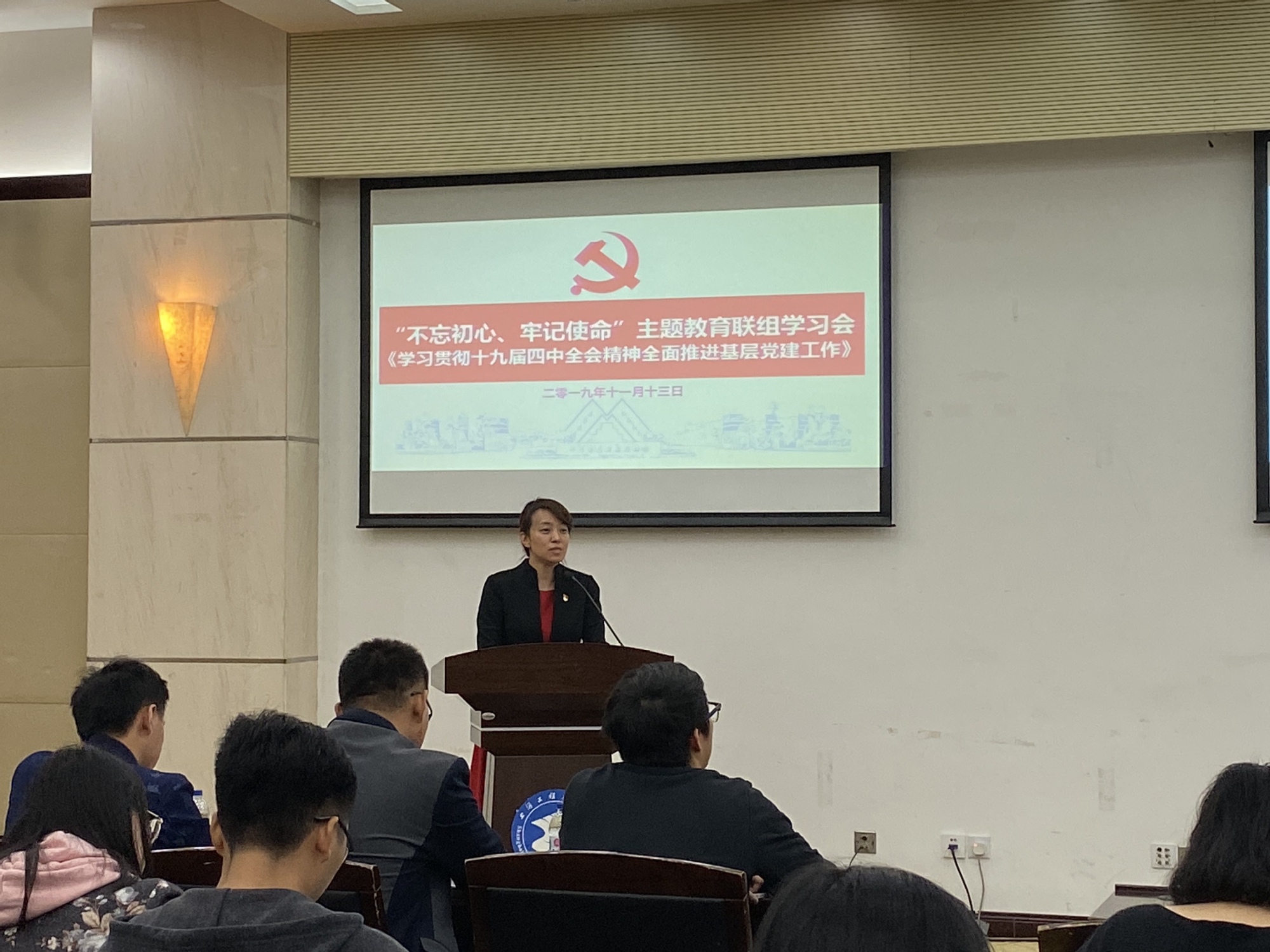 徐善良老师表示,党的十九届四中全会彰显了制度自信,推进了制度治理,提升了制度文明,是一次具有开创性、里程碑意义的重要会议。全会审议通过的《中共中央关于坚持和完善中国特色社会主义制度、推进国家治理体系和治理能力现代化若干重大问题的决定》第一次系统描绘了中国特色社会主义制度的图谱,强调坚持和完善中国特色社会主义制度、推进国家治理体系和治理能力现代化,是全党的一项重大战略任务,对推进党的政治建设意义重大。高校党支部建设是全面加强党对高校的领导、贯彻党的教育方针、改进高校思想政治工作的基础工程,是落实立德树人根本任务的组织保证。与会领导班子成员、系室负责人、党支部书记纷纷表示要深入学习贯彻党的十九届四中全会精神,以整改落实为契机,推进提升基层党组织建设,围绕学校学院中心工作,推动学校国内一流的高水平现代化工程应用型特色大学建设。
