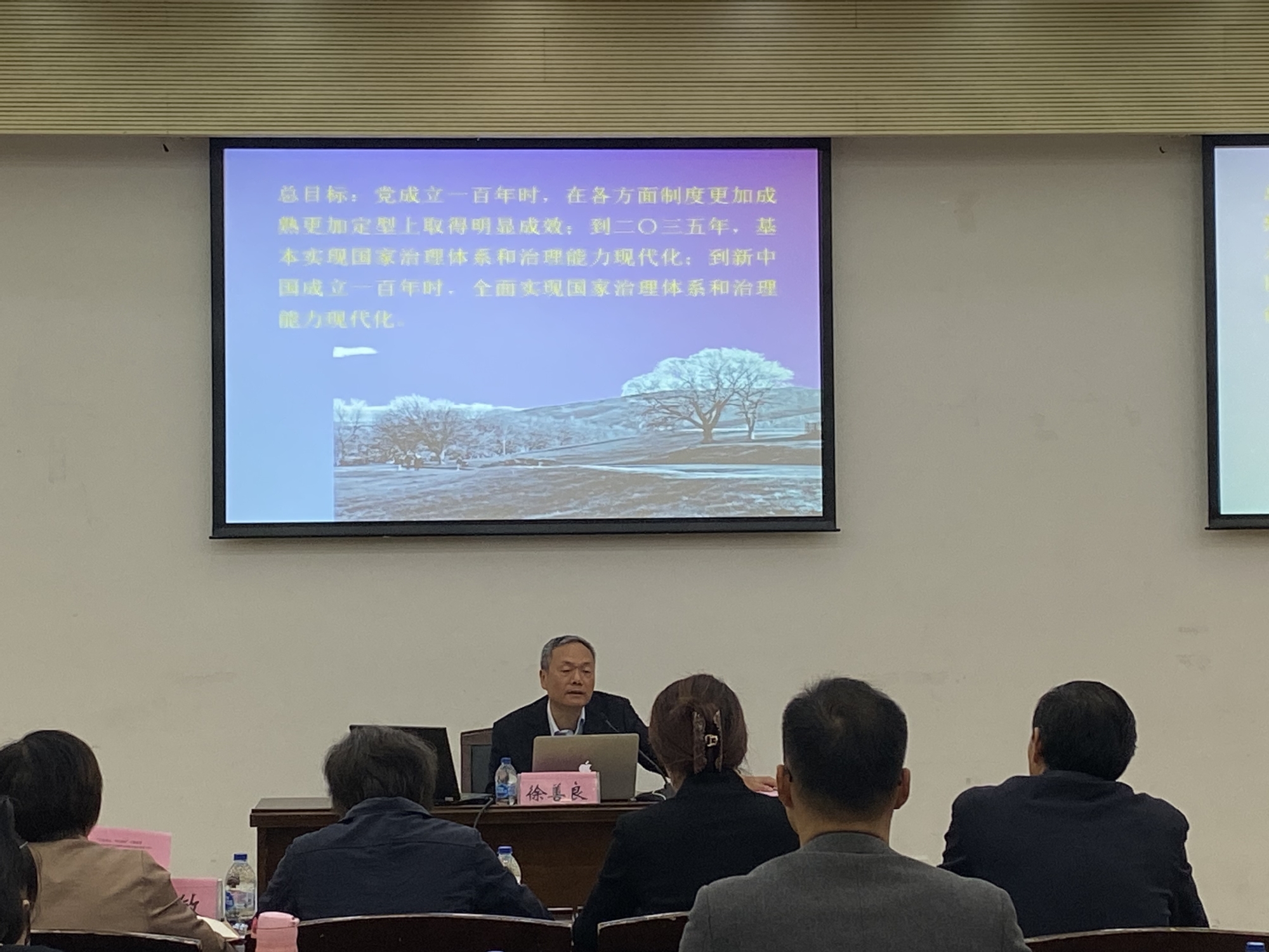 为深入推进“不忘初心、牢记使命”主题教育,全面贯彻中国共产党第十九届中央委员会第四次全体会议精神,加强党的组织建设,11月13日上午,艺术设计学院党委举办学习十九届四中全会精神整改落实提升基层党组织建设暨艺术设计学院党委干部培训班。联组学习会邀请了原上海市市级机关工作党委副书记徐善良老师解读党的十九届四中全会精神及整改落实提升基层党组织建设。艺术设计学院党委书记袁蓉、管理学院党委书记周洁、社会科学学部党总支书记许传宏、数学外国语联合党委书记钱慧敏、服装学院党委书记朱君璇出席会议,各学院党委委员、组织员、党支部书记、党外知识分子、系室负责人、师生党员参加,会议由艺术设计学院党委书记袁蓉主持。