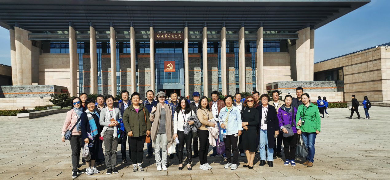 11月16日上午,各位盟员前往位于南湖湖心岛的红船现场教学。画舫静静地停泊在湖心岛旁,迎接前来瞻仰的人们,一起追忆当年的风云变化。回首当年,中共“一大”在上海秘密举行,因突遭法国巡捕搜查,会议被迫休会,代表们从上海转移到嘉兴,在南湖的一艘丝网船上完成了大会议程,宣告了中国共产党的诞生,现场的游船形象地反映了中共“一大”在南湖游船上胜利闭幕这一重要历史事件。访踪亭内竖立着董必武题写的诗碑:“革命声传画舫中,诞生共党庆工农。重来正值清明节,烟雨迷蒙访旧踪。”,昭示着红船的传奇历史和经历传奇的先辈心声。