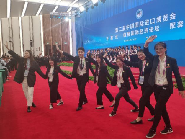 语言、文化、视察——“一馆天下”的背后,是工作人员们的不舍昼夜。艺术设计学院进博会临时党支部在今年六月份成立。自党支部成立以来,实习学生党员认真学习贯彻党的十九大精神,十九届四中全会精神和习近平总书记在第二届中国国际进口博览会讲话精神,坚守自己的初心,践行自己的使命,在进博会筹备过程中,立足岗位要求,服务国家战略,安心做好本职工作,充分发挥了共产党员的先锋模范作用。倪中天、徐凯艳、袁茹琪、吕洁纯、沈宇东五位同学是第二届进博会的实习生。身为进博会核心区域的工作人员,从五月份开始,便负责进博会的筹备与准备工作,付出了很多的努力与汗水,经历了很多的苦难与艰辛。他们不忘初心、牢记使命,燃烧自己的力量为进博会的顺利开展保驾护航。