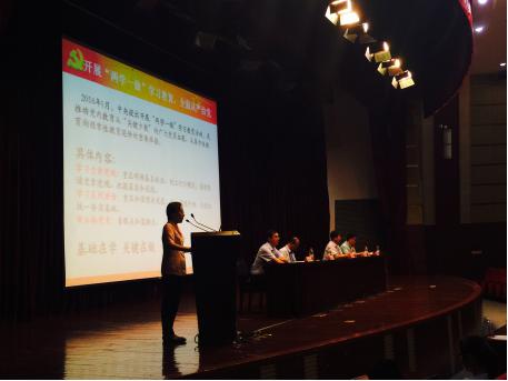 杨寅华书记首先介绍了学院党委的基本情况,支部的设置,人员结构的数据等方面,向学生深入浅出的讲述了我们为什么要加入中国共产党,大学生入党的意义和入党需要的基本条件,结合人生三部曲:“如何做人,如何做事,如何做学问”等把党的事业和个人的发展紧密融合,与此同时,杨书记与时俱进把党委最近开展“两学一做”学习教育意义进行了讲解。给新生讲述了中国共产党的基本知识、发展流程等内容,让学生对党的认识和怎么样加入中国共产党有了一个明晰的认识,从而在接下来的大学生活中做到“没进党的门,先做党的人”。