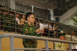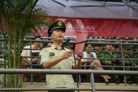 2016级学生军训师师长霍华中校代表承训部队表示,全体官兵在军训过程中将不辜负学校的期望和信任,圆满完成军训任务,同时他希望同学们在军训中团结友爱,互帮互助,通过军事训练增强体魄,培养坚韧不拔的品质。