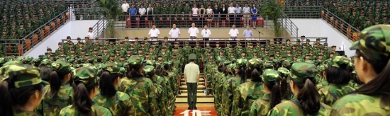 上海工程技术大学校旗在体育馆中迎风飘展,新生开学典礼暨军训入营仪式圆满结束。2016级新生将进行为期七天的军政训练,开启大学生涯的第一课。