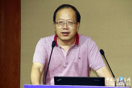 中国社会科学院世界社保研究中心主任、中国社会科学院美国研究所所长郑秉文教授作主旨演讲(本网记者查建国/摄)