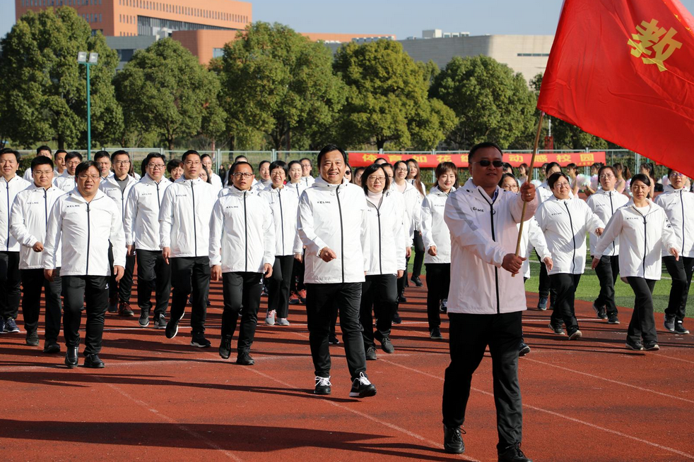 “勤奋、求是、创新、奉献”,在运动员入场式上,由64名教师组成的教工方队,在校党委副书记、工会主席史健勇老师的带领下,伴随着雄壮的《运动员进行曲》,精神饱满、步伐坚定、口号响亮地走过主席台,如踏上征途的士兵,充满青春的朝气与豪情,彰显学校“只争朝夕、敢为人先、求真务实、开拓创新、追求卓越”的办学精神。“团结进取、奋力拼搏,挑战自我,争创一流”,这是机关人发出的最强之音,他们将在充分发挥好参谋助手作用的同时,不断强化“以生为本,以师为先”和“管理就是服务”的思想,充分展现教书育人“奋进之笔”的昂扬状态和坚定决心。