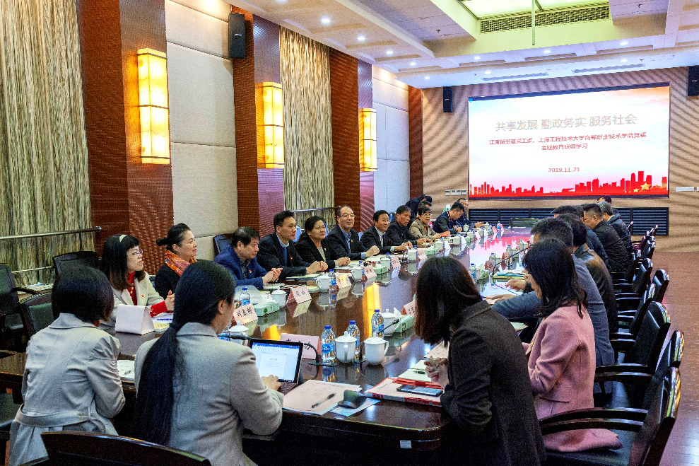 联组学习话“担当”,政校合作共“作为”,为进一步扎实开展“不忘初心、牢记使命”主题教育,提高各级党组织的主观能动性、精神领悟性、互动交流性。11月21日上午,上海工程技术大学高等职业技术学院党委与虹口区江湾镇街道党工委举行“不忘初心、牢记使命”主题教育中心组联组学习会,会议围绕习近平新时代中国特色社会主义思想中坚持以人民为中心,带领人民创造更加幸福美好生活的相关内容,以“共享发展、勤政务实、服务社会”为主题,深化校企政合作进行学习研讨。