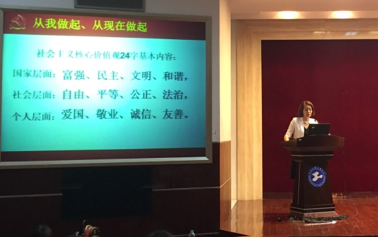 在党课的最后,袁书记引用了毛泽东在《纪念白求恩》一文中的一段话“把自己培养成:‘一个高尚的人,一个纯粹的人,一个有道德的人,一个脱离低级趣味的人,一个有益于人民的人’”。表达了对本届新生的美好祝愿。