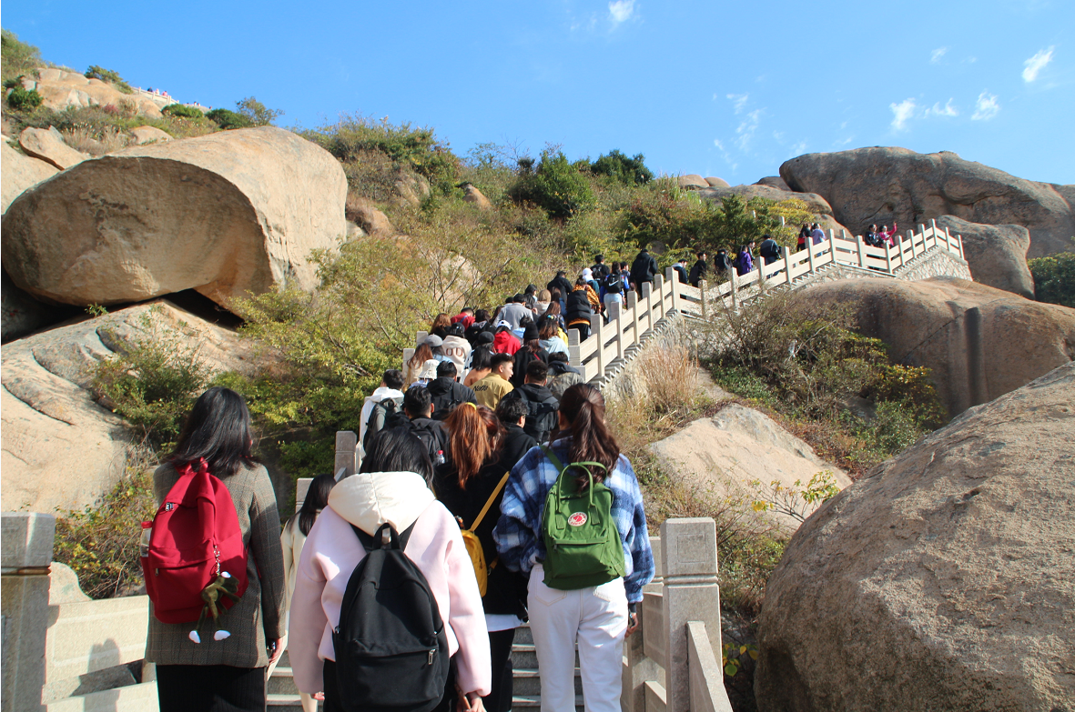 同学们乘车穿过总长约32.5公里的中国第一座外海跨海大桥——东海大桥,到达洋山深水港区进行游览,怀着满腔热情登上洋山深水港景区的山顶,亲身体验全球最大的智能集装箱码头带来的经济活力,体会到我国在科技创新、航运创新方面的重大成就,感受到日益强大的中国力量。