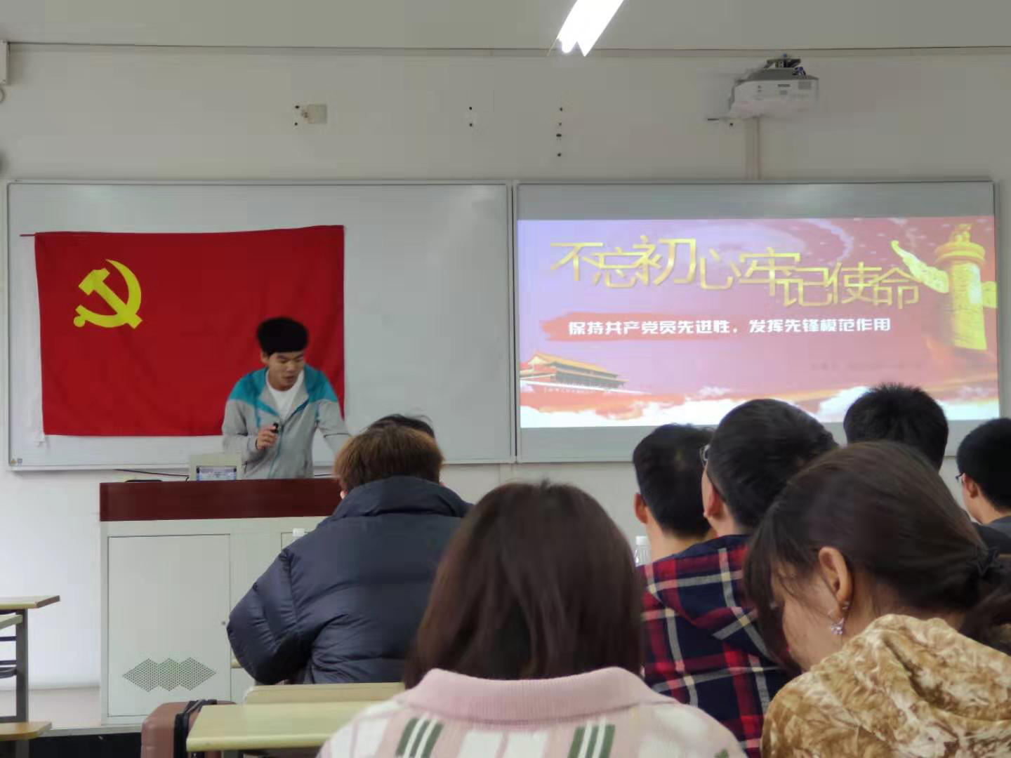 11月22日下午,汽车工程专业本科生党支部在B106召开“不忘初心、牢记使命”主题教育专题学习,此次专题学习为支部“周五学堂”第七期暨预备党员培训班成果汇报会。本次学习活动由支部宣传委员张靓同志主持,支部入党积极分子、入党申请人近50人参加了此次学习活动。
