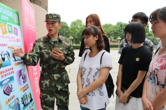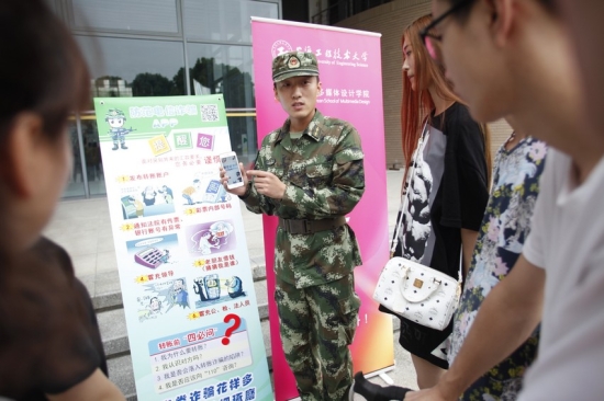 “我不接受电话办理任何业务。”近日,武警上海总队七支队大学生干部刘承航正在上海工程技术大学为新生传授防电信诈骗招法。据悉,该支队以军训为契机,联合学校有关部门以发放宣传单、研发防骗app等形式,向入学新生揭露电信诈骗违法犯罪分子的作案手段、特点和危害,并介绍识别技巧和防范技能,警醒新生时刻保持警惕,严防上当受骗。