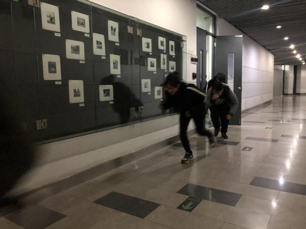 演练活动前,艺术设计学院党委书记袁蓉针对学生火场逃生、救援疏散等事项做好部署和分工,以确保演练顺利进行。16:30,警报声响起,学生工作办公室老师立即通知各个处于教学工作中的实验室师生疏散,疏散引导老师立即到达指定岗位,根据疏散方案,引导暗房学生快速疏散,带领学生弯着腰用手帕、毛巾等捂住口鼻,有序撤离到艺术楼前广场的安全地带,耗时3分5秒,随后老师清点人数,并层层向上汇报,30多名演习师生全部安全疏散完毕。