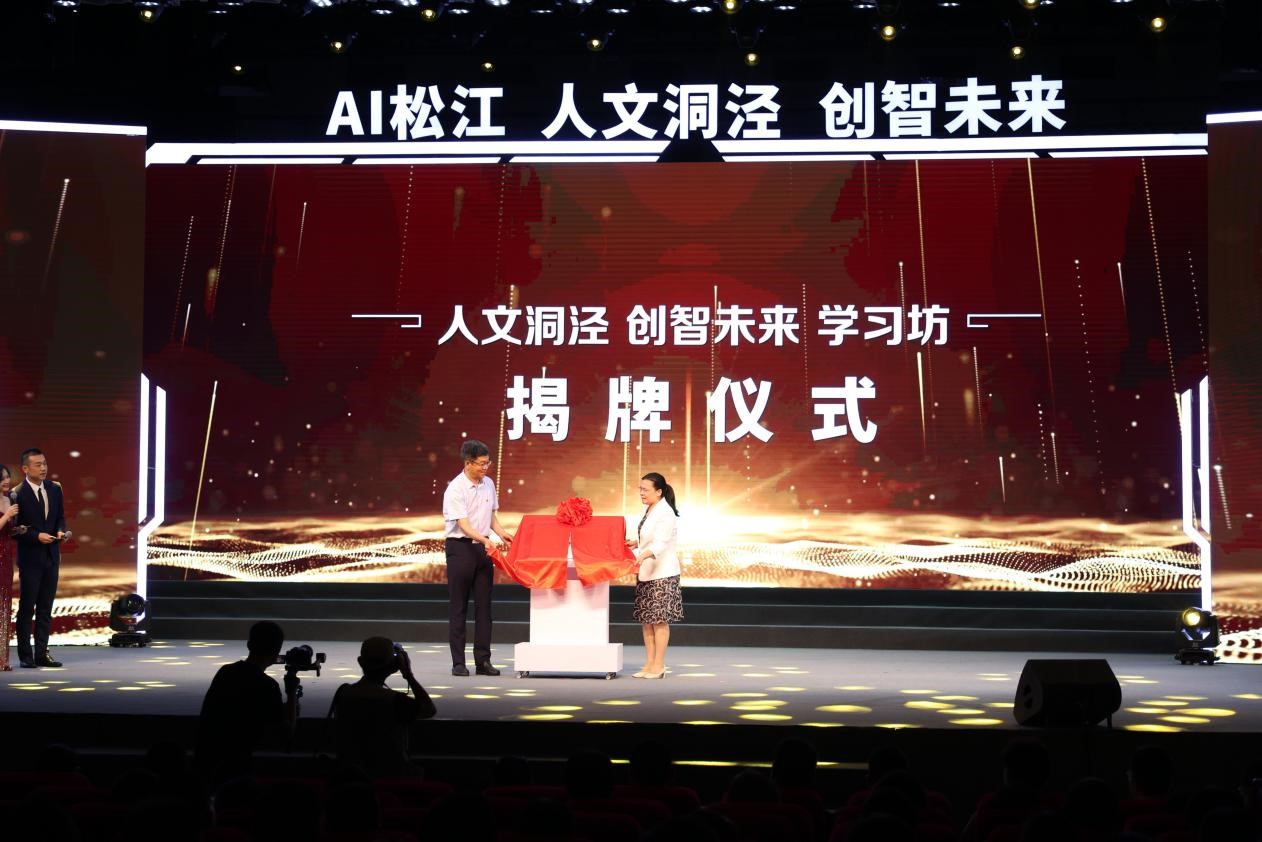 松江区教育局党委副书记、局长陈小华,艺术设计学院党委书记李云先共同为“创智未来”学习坊揭牌。“创智未来”学习坊系上海工程技术大学国际创意设计学院与洞泾镇合作创建,在教育、科技、人才融合发展上积极探索,发挥松江大学城高校云集的优势,集聚“政产学研”等各类创新要素。