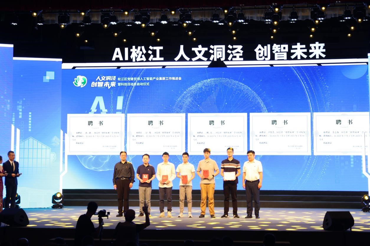 活动现场,松江区开放大学院长周明、洞泾镇党委副书记周乾新为上海工程技术大学国际创意设计学院5位授课教师颁发聘书,并发布学习计划。上海工程技术大学国际创意设计学院与洞泾成校共同创建“创智未来”学习坊,为社区居民提供人工智能科普系列课程,让居民群众的获得感和幸福感在“家门口”不断升级。