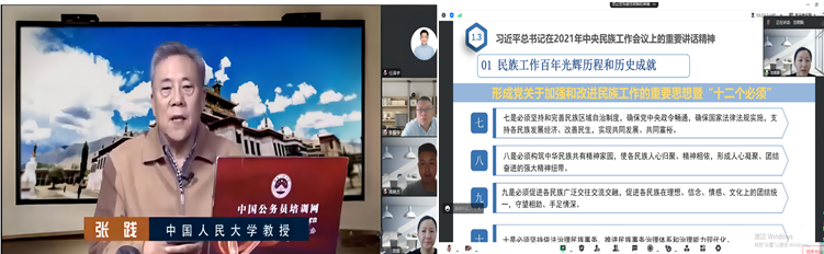 参会人员首先学习了上海干部在线平台上中国人民大学张践教授讲授的“学习领会习近平总书记关于宗教工作的重要论述”视频课程,全面学习了有关宗教工作的基本方针、发展中国特色的宗教理论、宗教的中国化等方面内容。