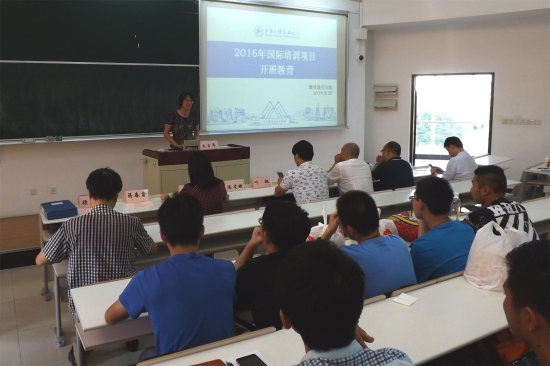 9月20日下午,继续教育学院在松江校区教学楼J302举行了2016年国际培训项目开班教育。院长陈凌珊、党总支书记叶枫、副院长胡建平、项目合作单位代表及培训学员参加了开班教育,会议由培训部主任顾建勤主持。