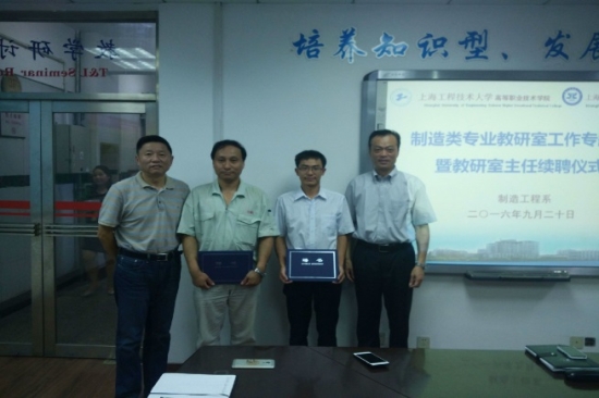 高职学院近期召开了“制造类专业教研室工作专题会暨教研室主任续聘仪式”,高职学院柳如荣书记、胡宁副院长、制造工程系主任万军老师、副主任杜继涛老师、刘素华老师、全体教研室主任参加了此次会议。