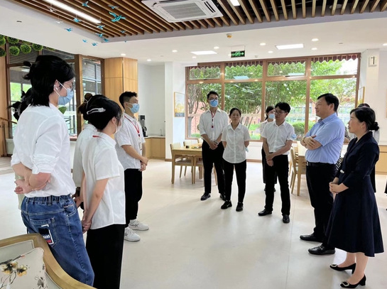 为了做好学生的专业实习工作,7月13日下午,史健勇副书记、罗娟副院长还带领养老服务教学团队走访九如城上海青浦区淀山湖福利院和上海人寿堂柠嘉养老院。青浦福利院院长徐斌对史健勇副书记一行的来访表示热烈欢迎,详细介绍了福利院内的残疾人养护中心、儿童福利中心、认知症照护中心等特殊功能模块,共同探讨了养老服务行业的人才需求。上海人寿堂人力资源副总监陈效介绍了集团的发展现状与规划愿景,表示迫切需要新生力量加入企业,助力企业发展与创新。