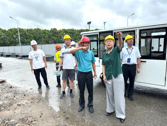 检查组一行来到教学楼改造现场和风雨操场建设工地,详细了解有关安全工作落实情况特别是防台防汛的准备应对情况,就施工安全等进行现场查看,并与基建处负责同志作工作交流。