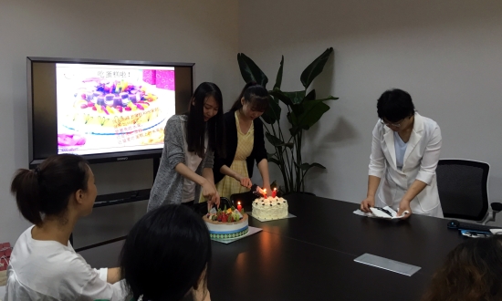 会后,学院开展了“迎国庆 送温情”与祖国同庆茶话会,受到教工们热烈欢迎。此次茶话会活动将学院教职工集体生日与迎国庆相结合,在浓浓的节日氛围中,学院教职工们齐聚一堂,为伟大祖国和部分过生日的教职工共同庆生。工会主席吴菁老师为集体过生日的教职工们送上了美好的生日祝福。青年教师代表也纷纷发言,表示珍惜岗位,倍感温暖,今后将以实际行动立足本岗,积极工作,为学院贡献自己绵薄之力。随后,寿星们一起许心愿、吹蜡烛、切蛋糕,一片欢声笑语中,教职工们一起品尝了美味的生日蛋糕,更享受着来自集体的温暖和关爱。整个茶话会的气氛祥和温暖,学院老师们在一起共庆祖国伟大生日,交流工作和思想,享受紧张工作之余的幸福快乐,感受同事朋友间的真挚情谊,体味学院大家庭的温暖。大家纷纷表示将立足本职岗位,更加努力工作,为即将到来的评估工作贡献自己的一份力。