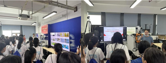 同学们走进电子电气工程学院人工智能研究院,黄勃、张振华等老师和志愿者介绍了学院在人工智能领域的科研成果,让同学们近距离接触最新的人工智能技术,了解利用大规模的知识图谱来提供智能化的知识管理和推理服务,并参观实验室的新兴设备,亲身感受人工智能技术的魅力。