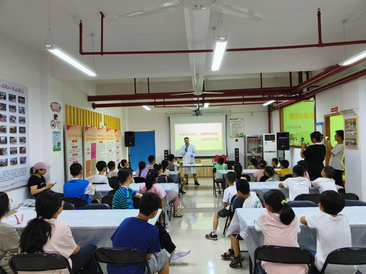 由于化学化工学院高分子材料与工程专业教工党支部为保利西子湾居委会开展的三期“探秘神奇化学,点燃科学梦想”活动得到了社区家长和中小学生的喜爱,在居委会的邀请下,8月9日,支部书记王继虎再一次走进社区,为学生们开展了制作熔岩灯的实验,活动吸引了30多名学生参加。
