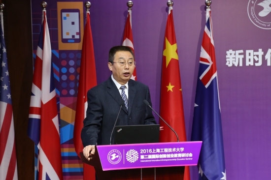 随后,上海市教委副巡视员王志伟为此次研讨会致辞。他提到,在同时开幕的第二届“全国大众创业万众创新活动周”期间,迎来了上海工程技术大学第二届国际创新创业教育研讨会的开幕,使人深切感受到了目前“双创”活动的深入和创新创业热情的高涨。而高校必须担负起创新创业人才的培养任务,但在创新创业人才培养过程中,如何实现各类资源的整合,优化理论与实践的衔接,促进高校与科技园区及创新孵化组织的联动,是摆在我们面前的一项重要课题。在此形势下,上海工程技术大学继2015年举办首届国际创新创业教育研讨会取得良好效果的基础上,加强国际创业教育领域的交流与合作,为我们推进创新创业教育改革提供有益的参考。为我们积极借鉴国内外先进的创业教育理念,进一步丰富和完善我们高校的创新创业教育实践环节,搭建了一个思想碰撞、创意交流的平台。希望借助于这个平台,在“双创”大潮中为高校创业教育的发展增光添彩。