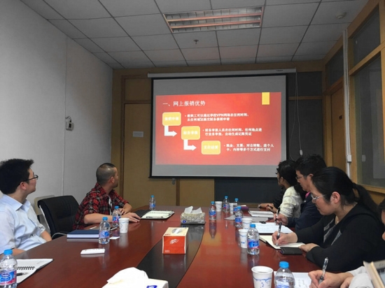 立信会计金融学院财务处毕天睿副处长简要介绍了财务信息化的运维情况和相关管理经验,分管财务老师分别对预算申报系统、网上报销系统进行了详细介绍和系统实际操作展示,在积极肯定兄弟院校创新做法的同时,我校财务人员还就系统中可能出现的各项热点、难点问题同立信会计金融学院财务处的老师们进行了深度讨论,并对日常财务管理工作中的各项问题交换了看法。