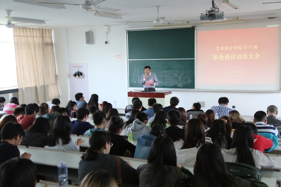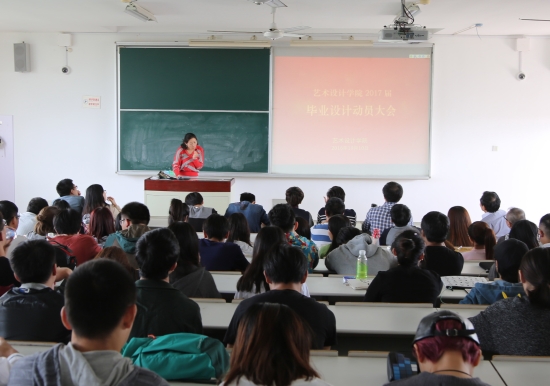 为了有效落实艺术设计学院2017届本科学生的毕业设计(论文)工作,确保毕业设计等相关事宜如期实施。10月10日下午,在教学楼F510教室,艺术设计学院举办了2017届本科毕业设计(论文)动员大会。全体毕业设计(论文)指导老师、辅导员及2017届毕业全体同学等参加了此次大会,大会由副院长刘珂艳主持。