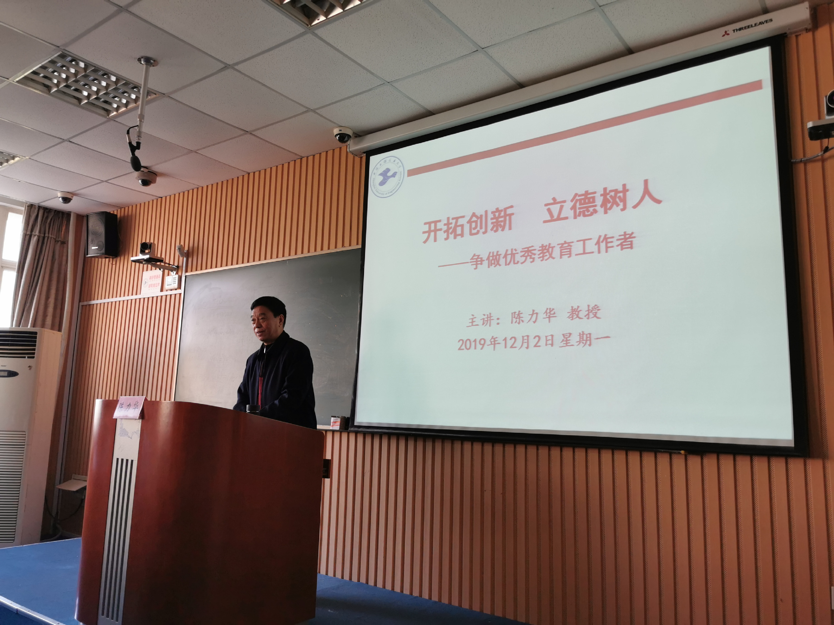 教师教学发展中心诚邀原上海工程技术大学副校长、校党委委员、现任校督导组组长陈力华教授为新进教师作了题为“开拓创新·立德树人-争做优秀教育工作者”专题讲座。陈教授从习近平总书记的讲话引出教师应当承担的责任和义务,也从我国“教育法”有关规定解读教师享有的权利;之后用自己35年的教学与管理经验,与在座的青年博士教师分享了自己教书育人的心得和体会;并通过践行立德树人,诠释如何争做优秀教育工作者;最后,以生动形象的十八种授课方法,与大家分享如何成为优秀的好老师。陈教授用风趣幽默的语言,生动的告诉青年教师如何关爱学生、如何自我成长,课堂上掌声阵阵、笑声不断,年轻教师均表示受到很多的启发。
