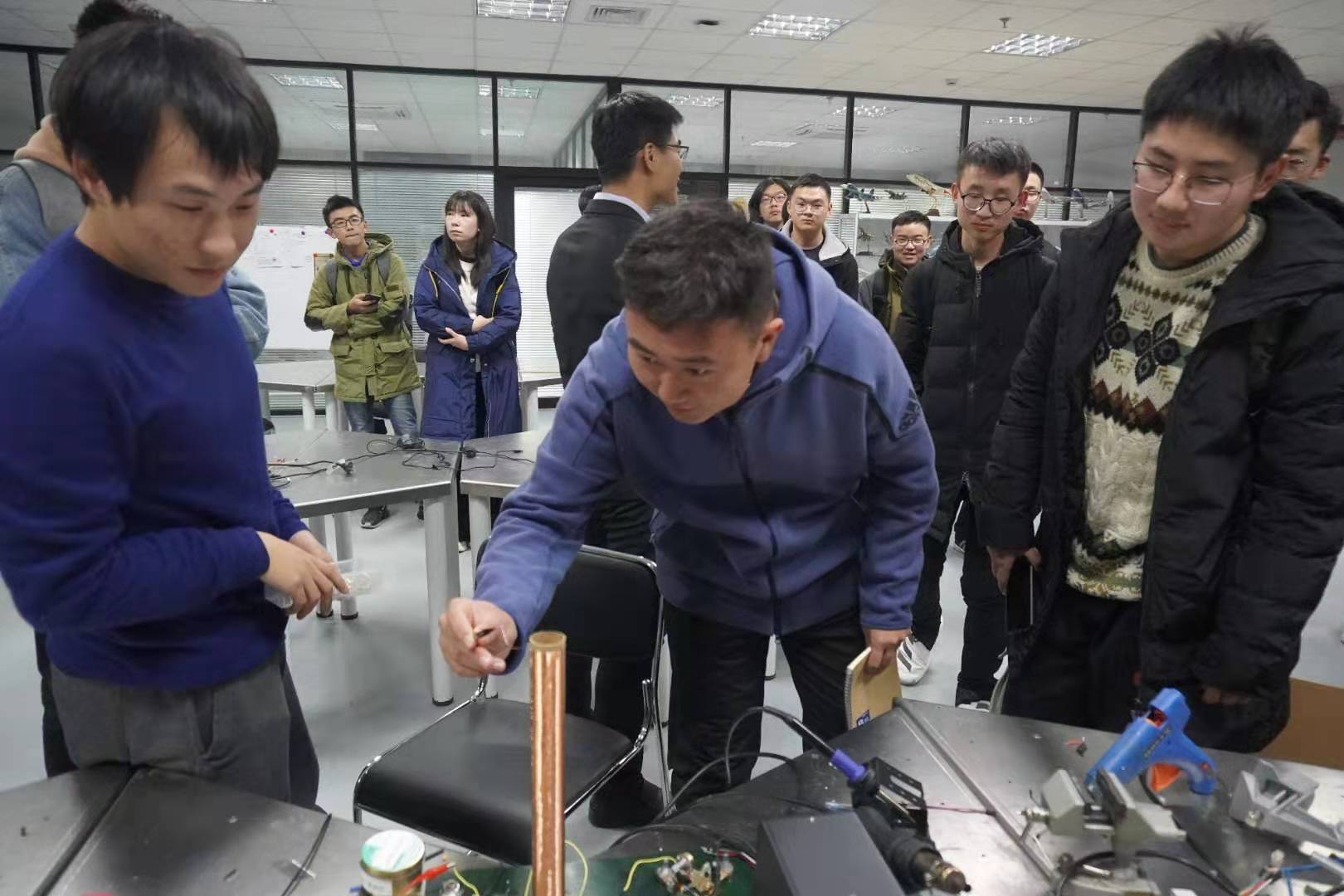 会议结束后,胡少林老师带领同学们来到6424大学生双创实验室进行参观。实验室的成员向同学们介绍了实验室的相关情况。