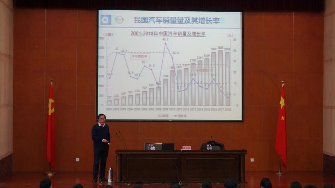 周院长从教30余年,是材料行业的专家,不仅在行业发展中有较大的影响力,并且培育出了一大批优秀的学生。周院长首先以详实的数据从近二十年以来汽车的销量和销量增长率为切入点,为同学们引入汽车产业的发展现状的介绍,对汽车行业几十年发展经历的阶段作了详尽的介绍。周细应教授表示,目前国内汽车产业正处于转型阶段,新能源等新科技手段在汽车行业的运用更是日新月异,中国汽车行业的发展将要跨入国际中高层次,需要大量专业人才,他鼓励学生积极探索,潜心研究。