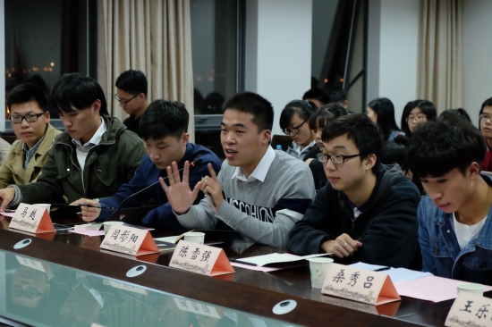 此次座谈会围绕新生入校的学习生活问题、学风建设等内容开展,各位学生代表在会上大胆发言,现场的学生代表踊跃举手,就同学们共同关心的问题和在座的老师们进行了交流。提问类别涉及晚自修制度、文化建设、导师制、图书馆管理、考风问题、学术讲座制度、研究生培养制度、研究生就业择业、外籍学生住宿问题等方方面面。面对学生的踊跃提问,史健勇老师、周洁老师与同学们进行了充分的、亲切的交流,每个问题都谈得十分细致,尽管深秋室外的气温很低,会场气氛热烈。