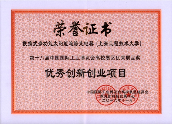 汽车工程学院郭兴洲同学团队的参展项目“便携式多功能户外高精度太阳能追踪充电器”荣获优秀创新创业项目奖励,我校也荣获优秀组织奖。