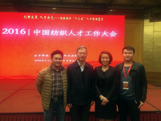 11月5日,服装学院党委书记袁蓉、王黎明教授、徐律教师等一行赴北京,参加由中国纺织工业联合会主办的2016中国纺织人才工作大会。会上我校服装学院荣获“2016年度中国纺织行业人才建设示范院校”称号,中国纺织工业联合会副会长夏令敏先生亲自颁奖、授牌。