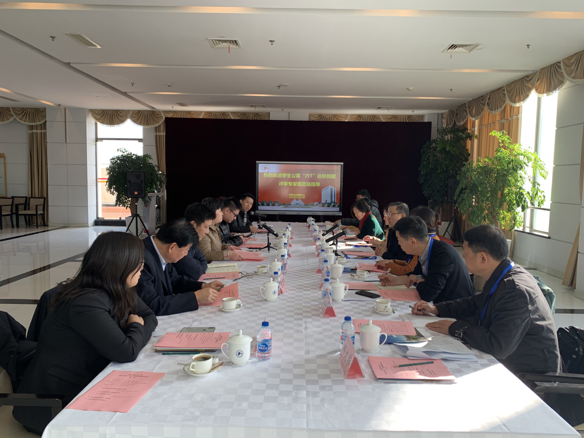 专家组一行来到“六T”管理创建楼(研究生1号楼、三期学生公寓12、16、17号楼)进行了现场检查与评审,认真检查了楼内的文化建设、保洁卫生、安全保障、管理规范等方面情况,并集中审阅了“六T”建设汇总材料。对我校学生公寓楼鲜明的服务特色、规范化的运作体系和后勤协同育人效果给予高度评价。