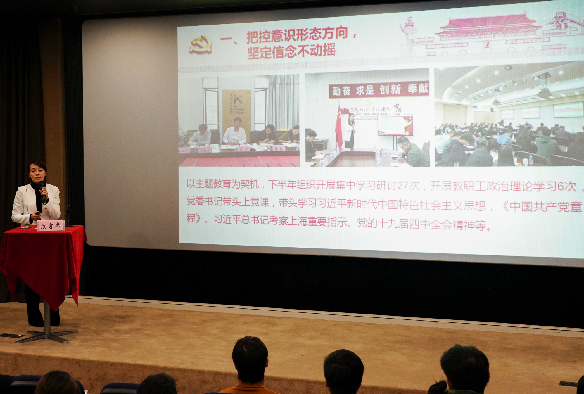 根据学校党委要求,袁蓉书记代表学院党委做《2019年度干部选拔任用工作报告》,各位党政班子成员分别进行了述职,与会人员在认真听取述职和干部选任工作报告后,在场100余人以无记名方式进行了民主测评。
