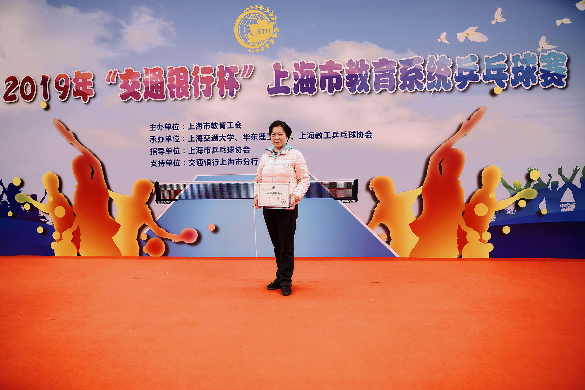 12月14日,2019年“交通银行杯”上海市教育系统乒乓球赛在上海交通大学霍英东体育中心举行。来自全市10个区教育局、6个直属单位和35所高校,共51支队伍400余位运动员同场竞技,尽情享受竞技体育带来的激情与快乐。我校教师邓娜、饶品华、陈小龙、李玲、郑超、沈磊、张嘉安等7位教师组队参赛。