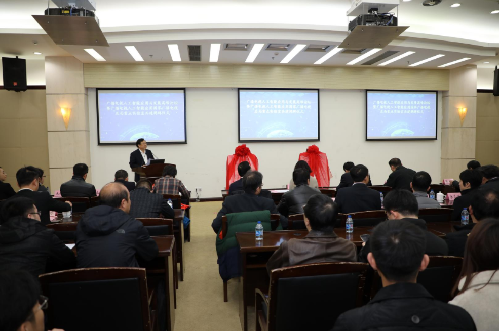 党委副书记、副校长朱晓青、罗毅副局长、杜国柱副院长、刘晓峰副总裁共同为“广播电视人工智能应用国家广播电视总局重点实验室”揭牌。论坛活动上,国家广博电视总局广播电视科学研究院信息与安全研究所郭沛宇所长、上海广播电视台技术运营中心尚峰总工程师、东方有线网络有限公司技术中心朱允斌高级工程师、东方明珠新媒体股份有限公司研究院张世乐高级总监、上海工程技术大学人工智能产业研究院常务副院长王国中教授分别从不同角度对人工智能、广播电视、以及人工智能等新技术在广播电视行业的应用作了了精彩的报告,对此领域的推动起到引领示范作用。