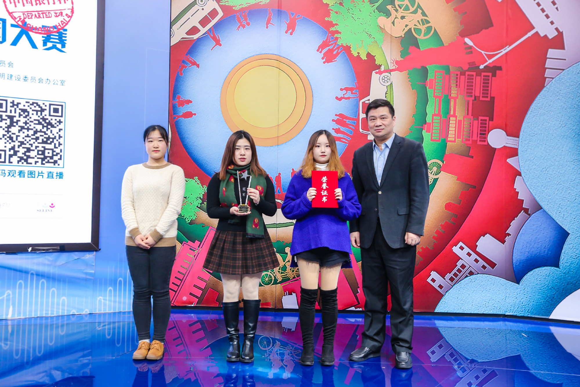 12月22日,“2019年中国银行杯上海市境外安全文明行校园大赛”总决赛在上海人民广播大厦举行,国际交流处包梦楹老师带领外国语学院翻译系学生王顾沁、夏怡、潘佳蕙参赛,经过激烈的角逐,最终我校以高分荣获大赛高校组冠军、最佳指导奖和最佳组织奖三项大奖。本次参赛由我校国际交流处全程策划组织。