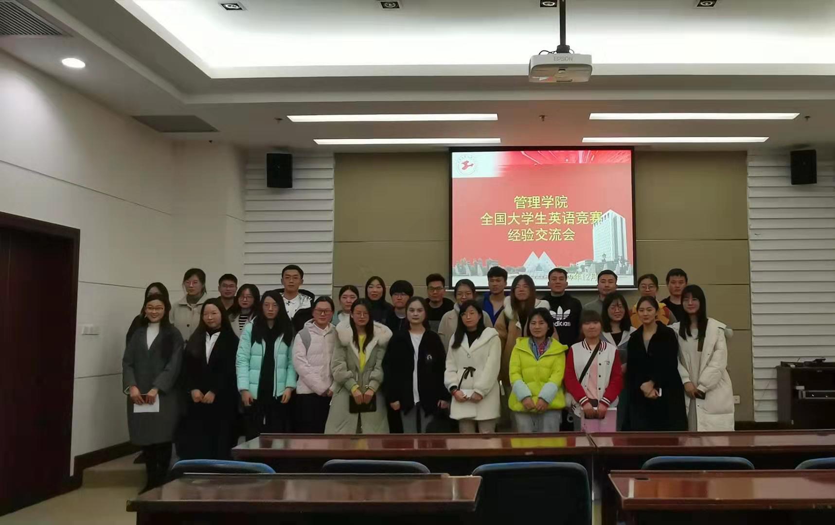 为了鼓励同学们参加全国大学生英语竞赛,并帮助同学们在大赛中取得佳绩,管理学院于12月23日在图文信息中心第四报告厅举办了全国大学生英语竞赛交流会。本次交流会由学生会实践部赵敏舒同学主持,邀请了来自18级研究生温新、尧淦、黄竞、段晓歌为同学们做经验分享,管理学院研究生们参加了此次交流会。