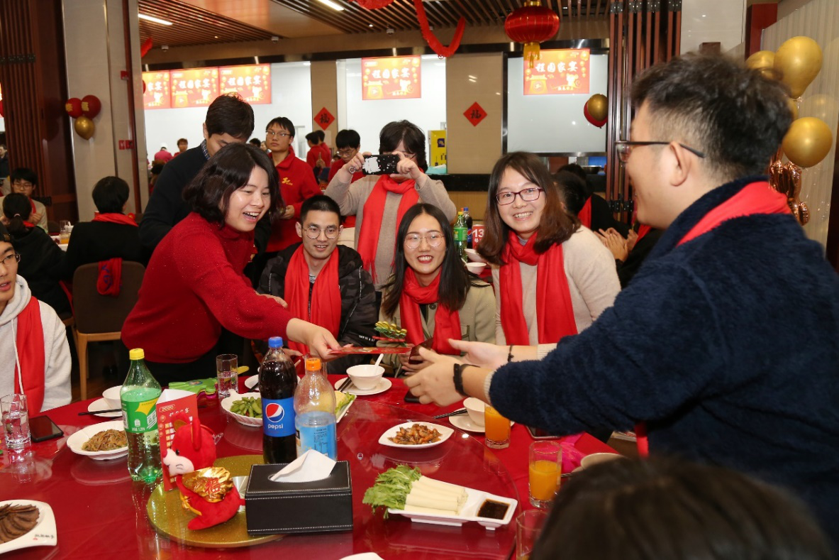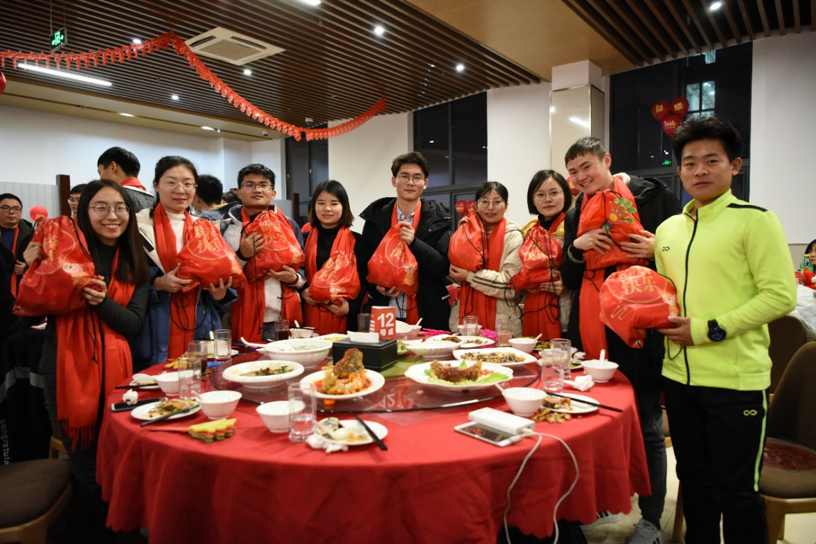 席间,校领导、老师们与同学们举杯畅饮,李江书记、朱晓青副书记为同学们送上工程大版窗花和工程大原创贺岁福袋,让同学们感受到了“鼠”不尽的年味和新春气氛。