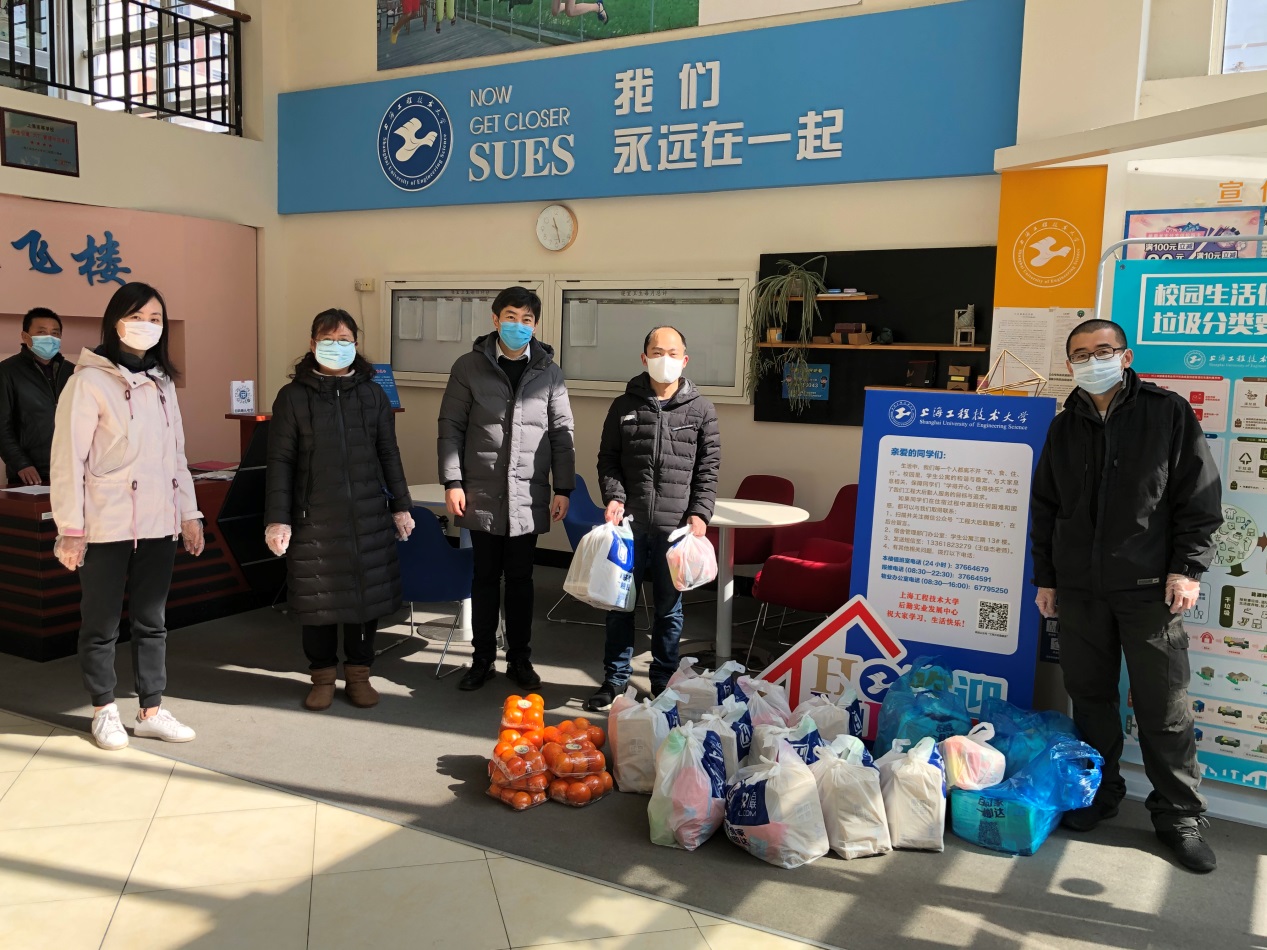 受新型冠状病毒感染的肺炎疫情影响,校园实施封闭管理,为了让留校学生安心在校,解决学生的后顾之忧,2月10日上午,学生工作部(处)长、研究生工作部长朱蓓,研究生工作部副部长李扬,学生工作部(处)副部(处)长吕宁、缪琳一行,满载着为留校的90名同学采购的日常生活用品,逐一发放到留校学生所在宿舍,以表达学校对留校学生的暖心关怀和慰问。